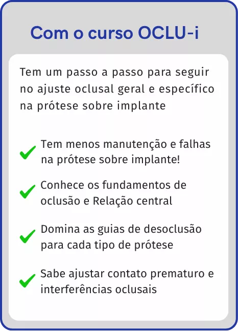 Aprenda oclusão, com linguagem simples e acessível, e REDUZA DRASTICAMENTE as manutenções de prótese sobre implante do consultório