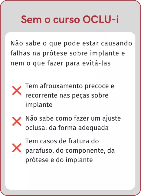 > Dificuldade em encontrar um conteúdo focado na implantodontia, mas que aborde a oclusão como um todo.